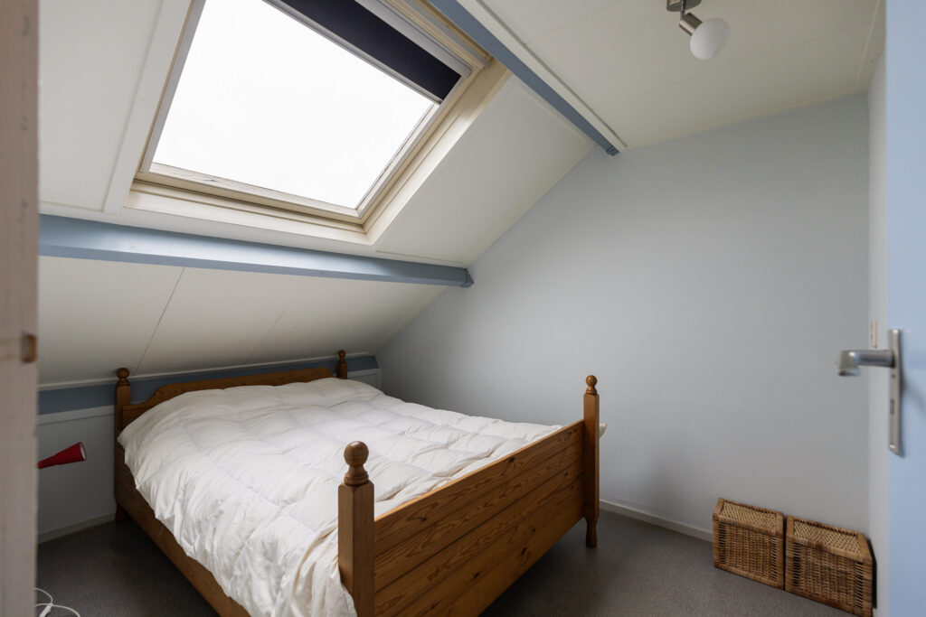 Tweede verdieping: vaste trap naar de zolderverdieping met nog twee slaapkamers, volop bergruimte en een praktische opstelling voor wasapparatuur.