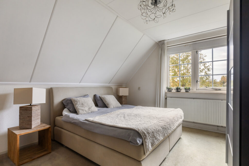 Via een vlizotrap bereik je de vliering. Een fijne bergzolder voor koffers, kerstspullen en verdere seizoensopslag.
